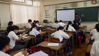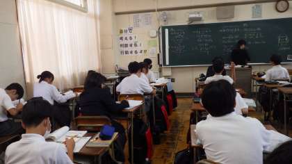 10月14日(火)1年生の様子です。1組数学、2組給食、3組国語・書写の様子です。頑張っています。