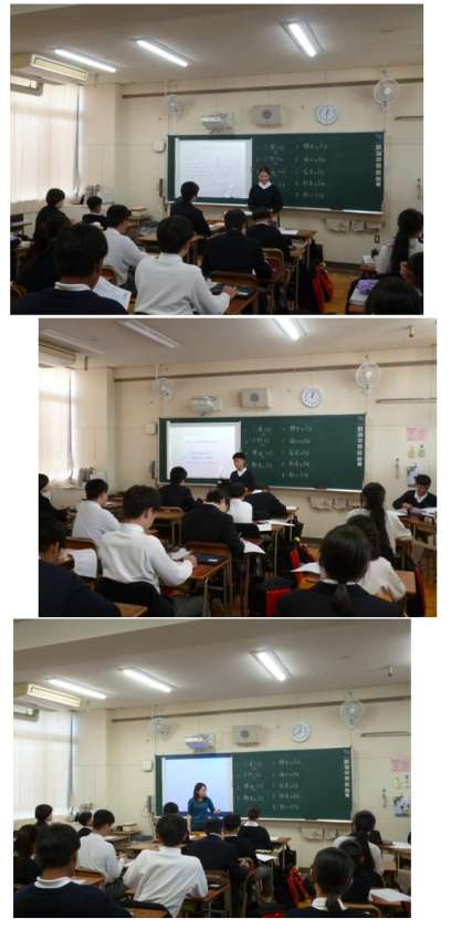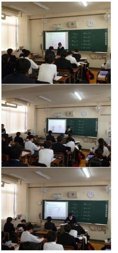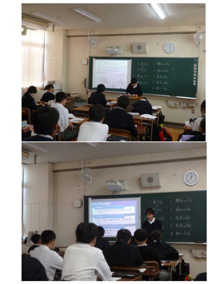 生徒が自分で調べた報告書を発表しています。