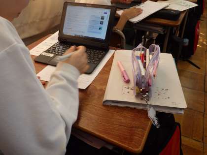 10月30日(木)10月も残すところあと2日、朝晩の寒さが厳しくなっていますが子どもたちは元気です。1年生の家庭科と理科の様子です。理科はパソコンで調べ学習です。