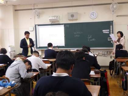 10月31日(金)10月最後の金曜日、朝から冷たい雨が降っています。子どもたちは一所懸命、頑張っています。2年生の英語、C-NETの先生の授業です。