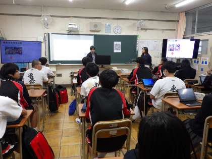 10月31日(金)3年生は高校の先生にお越しいただき出前授業を行いました。東大阪大学柏原高校の先生によるe-スポーツの様子です。お忙しい中ありがとうございました。