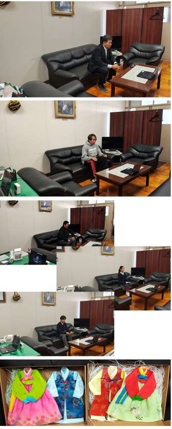 韓国視察団からいただいたお土産(チョゴリ)は玄関と朝文研ルームに飾ります。