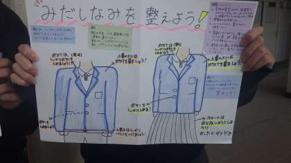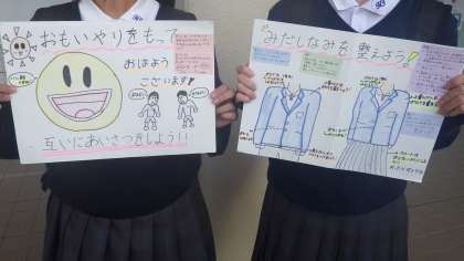 11月13日(木)風紀委員のみなさんが挨拶と服装についてのポスターを作りました。うまくできています。