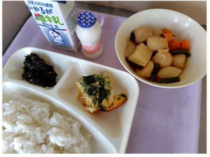 今日の千草焼きには鶏肉、とうふ、コーン、みつばが入っています。