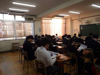 11月28日(金)11月最後の登校、期末テスト最終日です。3年生の様子です。頑張っています。