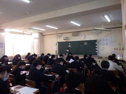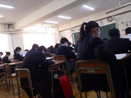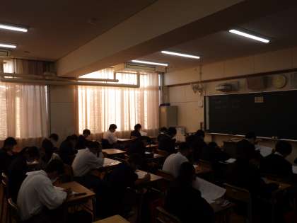 11月28日(金)11月最後の登校、期末テスト最終日です。1年生の様子です。頑張っています。