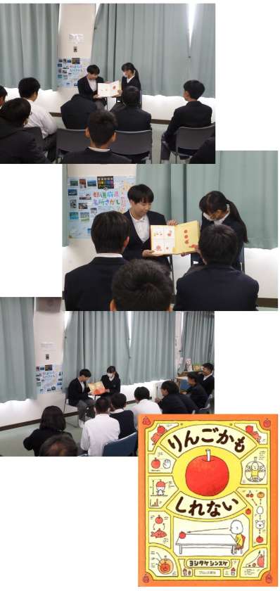 今日は1年3組が「りんごかもしれない」を読んでくれました。