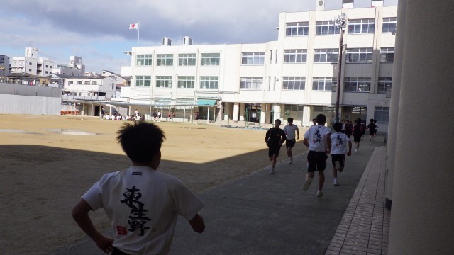 そんな中3年生頑張っています。男子は10分間走、女子は卓球です。