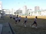 冷たい風が吹く中、運動場ではラグビー部とサッカー部が練習しています。寒さを吹き飛...