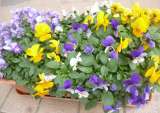 プランターにビオラ・ジュリアン・ナデシコが色鮮やかに寒さの中咲いています。それぞ...