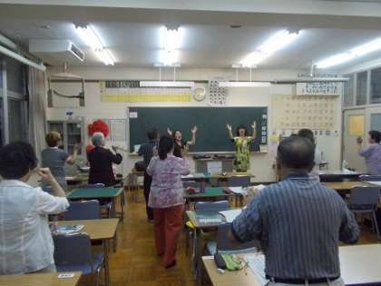 今日は、その打合せに来られ、合わせて授業見学もされ、F組ではミュージック・ケア体験を指導していただきました。