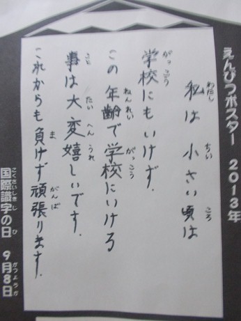 えんぴつポスター(5) 公開日 2014/09/25 更新日 2014/09/25 お知らせ 今年度も、どんな「えんぴつポスター」が書きあがったのか楽しみです。 【写真】昨年度のえんぴつポスター いいね(0)