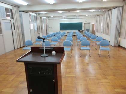 新型コロナウイルスの影響で延び延びになっていた入学式・始業式ですが、5月7日再開されるということで準備を進めていたところ、大阪市教育委員会から連絡が入り、11日に再開と再度の延期となりました。そのため、式場となる多目的室は、ひっそりとしています。