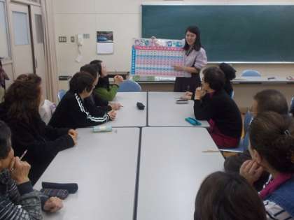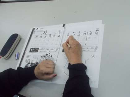 【上の写真】ハングル表記を使って教えるソンセンニム