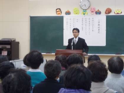 3学期始業式 公開日 2015/01/08 更新日 2015/01/08 お知らせ 1月7日(水)から3学期が始まりました。 久しぶりの登校に皆さん、新年のあいさつとともに笑顔たっぷりでした。 「学校が好き」という気持ちがあふれ出ていました。 「さあ、今年も健康に気をつけながらがんばりましょう。いつも応援してます。」 【上の写真】学校長のあいさつ 【中の写真】生徒会長のあいさつ 【下の写真】全国夜間中学校研究大会参加の生徒報告 いいね(0)