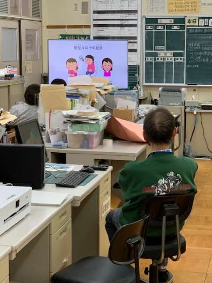 毎年、校医の先生から身体や病気のことについて生徒さんと一緒に教えてもらっています。今年は「新型コロナウイルス」というテーマです。しかしながら、この新型コロナウイルスの影響で、生徒さんの出席が激減し、今回は教師のみとなりました。それも事前にビデオをとり、それを視聴する形式です。校医さんのお話はわかりやすく、とてもためになりました。生徒さんの出席が良くなったら、また一緒に学習したいと思います。