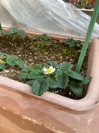 イチゴの花がさきました 公開日 2021/02/24 更新日 2021/02/24 お知らせ 久しぶりの農芸部からの報告です。昨年いただいたイチゴの苗を育てていたところ、先日 花がさきました。まだ、一つだけですが、これからが楽しみです。そして、おいしいおいしいイチゴの実ができることが、その次の楽しみです いいね(0)