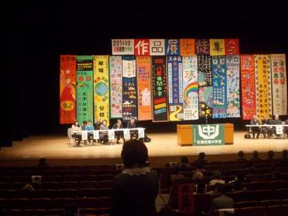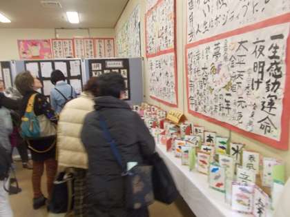 近畿夜間中学校連合作品展 公開日 2015/02/18 更新日 2015/02/18 お知らせ 2月15日(日)に八尾市文化会館(プリズムホール)で作品展がありました。 この1年間で、授業や部活動・夏期講座などで作った作品を出品しました。 近畿18校の出品作品の多さと見応えに一堂感心しました。 【上の写真】各校のえんぴつポスター 【中の写真】寄せ書き習字 【下の写真】生徒集会で発言する本校の生徒会長 いいね(0)