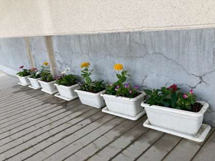 昨日購入した苗をプランターに植えました。これから校内でみんなの目を楽しませてくれる予定です。