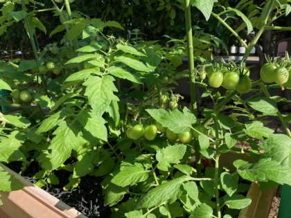 トマトは実がたくさんなってきてはいるものの、赤くなる気配はもう少し先のようです。