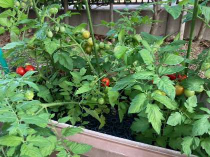 週明けの今日、農芸部顧問の先生に「ミニトマトが赤くなりました」と報告いただいたので見に行きました。