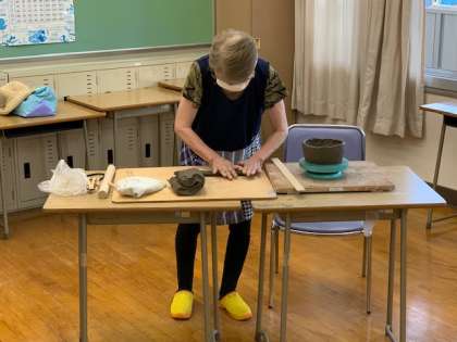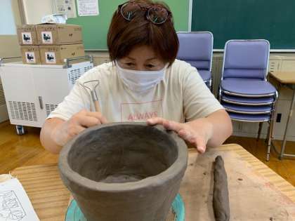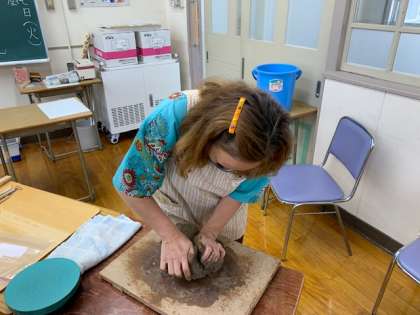 夏期講座 その2 公開日 2021/08/03 更新日 2021/08/03 お知らせ 夏期講座の様子2回目は陶芸教室です。普段さわったこともない固い粘土をこね、器に仕上げていく様子が伝わっているでしょうか?1日目は、その固い粘土をこねていくうちに体調を崩した生徒さんもいましたが、最終日には全員仕上げることができました。このあと、乾かして8月の中旬に焼き上げる予定です。焼き上げた作品は後日このH.Pで紹介します。 いいね(0)
