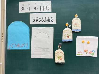 家庭科室黒板にも素敵な作品見本が貼ってありました。