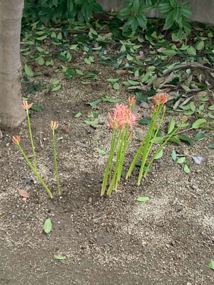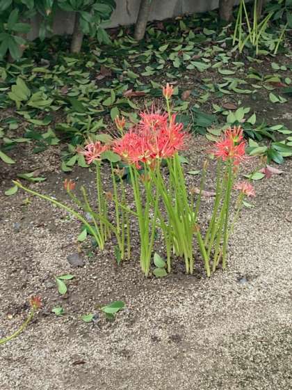 B組の窓から、農芸部さんが植えた草花が見えるのですが、ヒガンバナが咲いていると聞いたのでお邪魔して写真を撮りました。真っ赤に咲いてるものと、少し淡いものと2種類が見えました。秋の風景です。