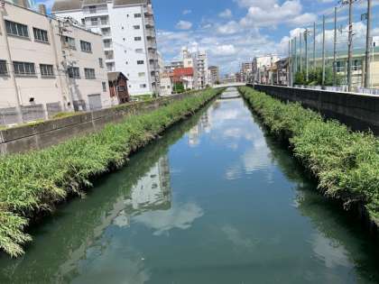 わたるたびに、きつい坂だな感じる学校の西横にある新今里橋ですが、ふと川を見れば両はしは草がおいしげっていましたが、ここ数日の間に草がかりとられ、きれいになりました。作業をしていただいだ方々に感謝いたします。