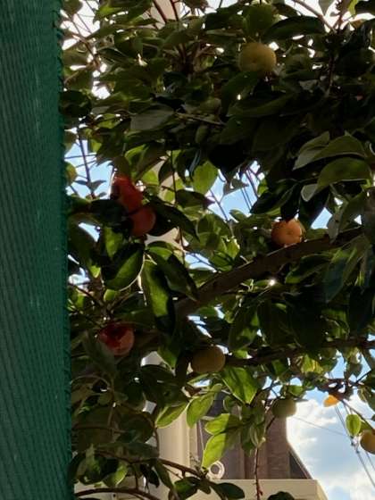 最近柿が色づいてきたなと思っていたら、鳥に味見されていました。
