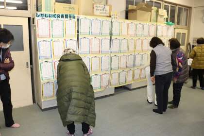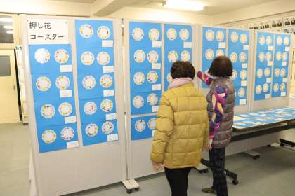 先週の金曜日、お昼の生徒さんたちが展示見学をしたのを皮切りに、今週20日の月曜日から23日の木曜日まで会議室で夜間学級の生徒さんたちの展示見学が億なわれています。月曜日に出席された生徒さんたちはクラスごとに見学したのですが、日ごろの自分自身の学習をかえりみたり、クラスメートや友だちの頑張りや良さを作品から感じることができました。