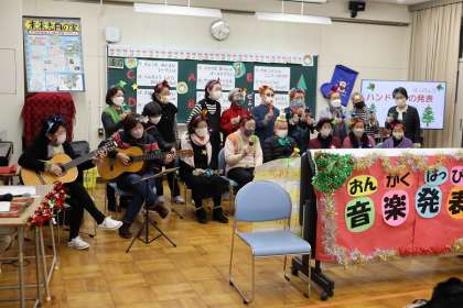 クラスで一丸となって協力して演奏したハンドベルは美しい音色を奏でていました。各クラスの発表がすべて素晴らしかったです。鑑賞する参加者ほ演奏終了のたびに大きな拍手をおくり笑顔がはじける楽しいひと時でした。