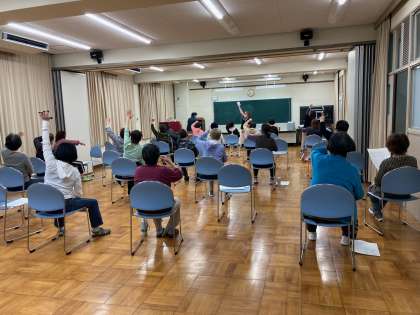 みなさんからだの色々な部分を伸ばして、普段使わない筋肉もゆるやかに動かします。
