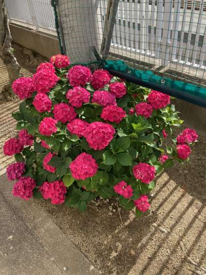 門の近くにあるあじさいが満開です。 今年も、生徒のみなさんに負けないくらい元気に咲きました!