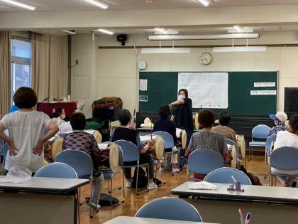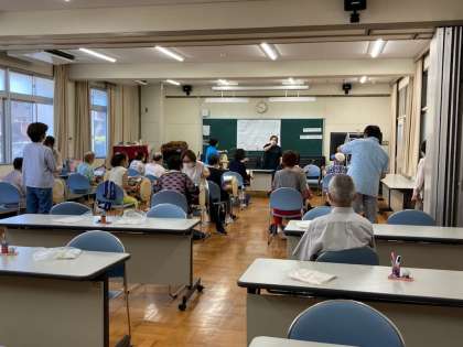 左腕を上から回して右側の面をたたきます。思ったように手が動かしづらく感じてしまいそうですが、みなさん一生懸命チャレンジされていました!