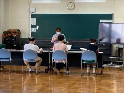久しぶりのコーラス部です。まずは声が遠くに響くように伸びやかに、発声練習からスタートです。