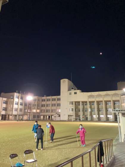 2限の様子です。ウォーキングやソーラン節で体を温めてから、グランドゴルフでみなさん思いっきりボールを打っていました。今日は月食で、少しずつ月が隠れていく様子も見られました。