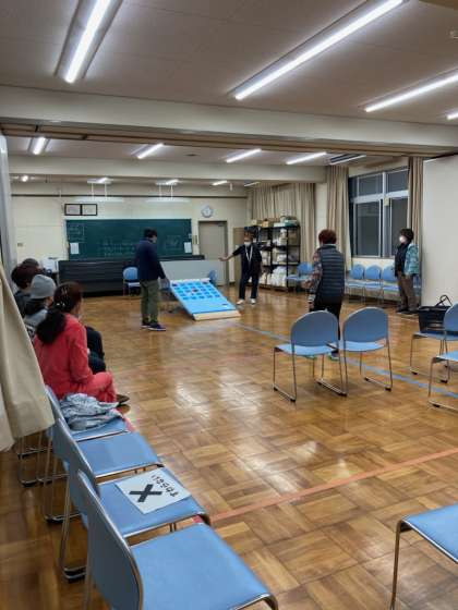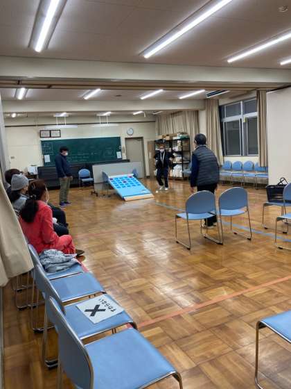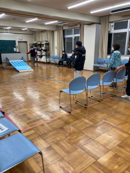 1/17 体育 公開日 2023/01/17 更新日 2023/01/17 お知らせ 2023年初めての体育です。2学期に取り組んでいたボッチャのような競技をされていました。玉を転がし、その勢いで跳ね上げてねらった場所へ入れるようです。みなさん、投げられる玉の行方から目が離せない様子でした。 いいね(0)