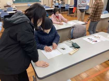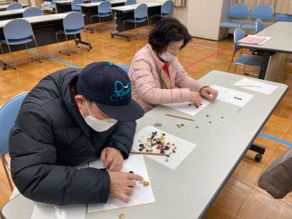 1/18 朝文研 公開日 2023/01/18 更新日 2023/01/18 お知らせ 今日は作品作りの続きです。前回考えた文字をボタンで張り付ける作業です。みなさん真剣にボタンを選び、バランスや色合いを考えながら作業されていました。 いいね(0)