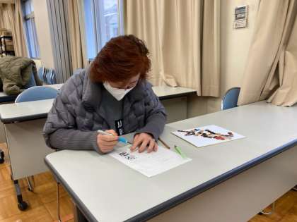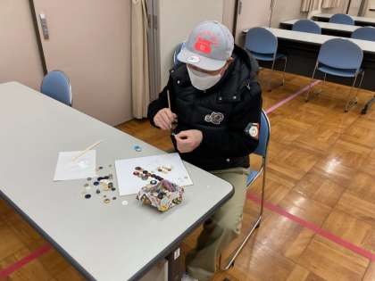 今日は太陽が出て、昨日よりは暖かそうに見えます。けれど、朝文研の活動時間前は雪が舞っていました。寒さに負けず7名の参加で、先週に引き続き作品作りです。