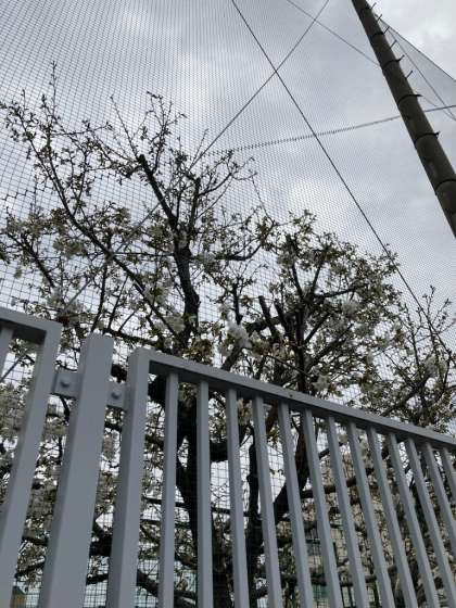 あいにくの空模様ですが、北西側の桜がかなり咲いていました。来週には南側の桜も咲きそうです。