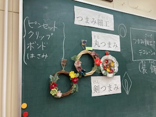 現在授業では、つまみ細工の作品作りが行われています。