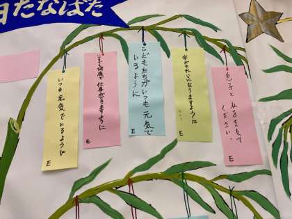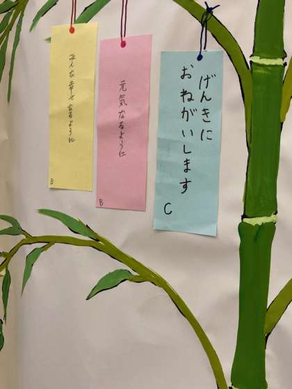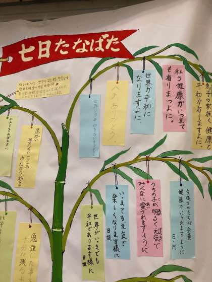 各クラスで短冊に願い事を書いて、笹に飾り付けていました。
