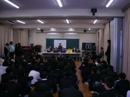 その後、昼間の生徒たちから質問があり、夜間の生徒はそれぞれ自身の経験を活かした回答を一人一人に返していました。夜間の生徒から昼の1年生に対して将来の夢を聞くと、たくさんの生徒が手を挙げ、生き生きと夢を発表し、夜間の生徒からは拍手が沸き起こっていました。
