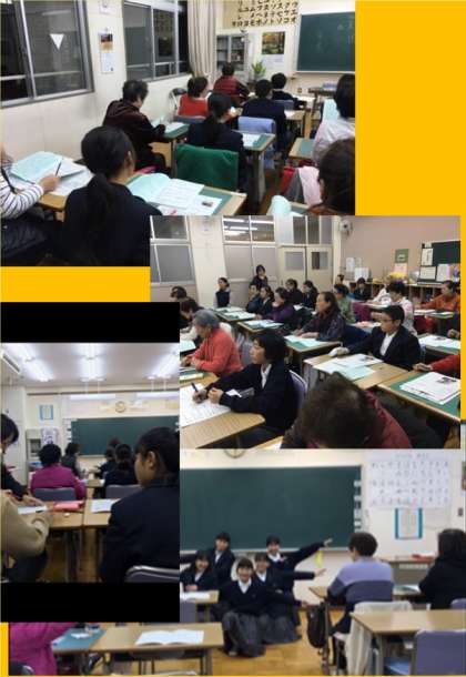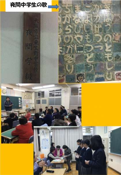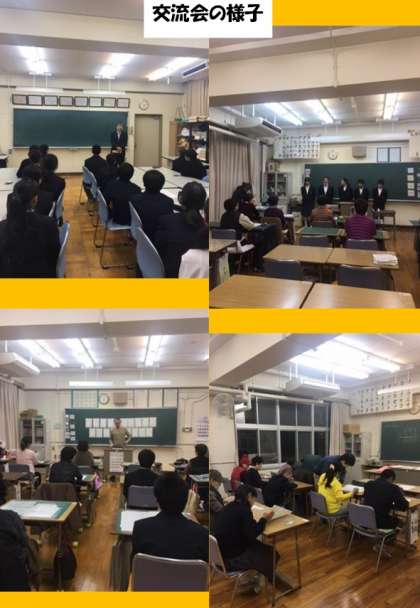 昼間の中学生も、平均年齢68歳の夜間学級中学生も少し緊張しながら学習し、その後、各教室でそれぞれ交流を持ちました。