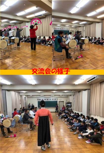 昨日の13日、小路小学校の4年生が夜間学級に来てくれました。夜間学級の国際クラブ朝鮮文化研究会の生徒さん達と交流しました。
