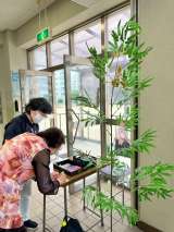 七夕の笹を玄関に置きました。 自由に願い事を書いて、笹につるすことができます。 ...