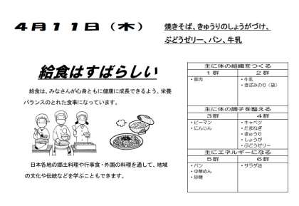 本日の給食 4月11日(木)