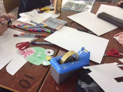 今日はお面をつくりました。全員美術部に本入部するそうです。