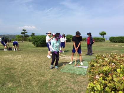 よいお天気のもと、海と山に囲まれて楽しんでます。